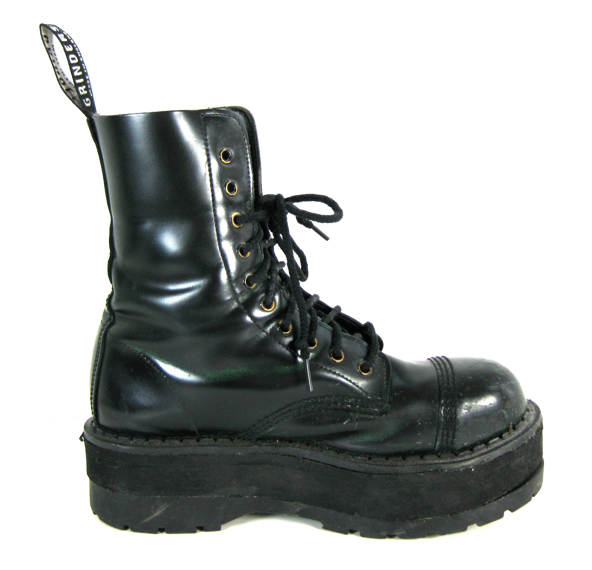 These beautiful Grinders boots have only been worn a handful of times for Dope photoshoots in 2001. I had them platformed when I bought them 25 years ago and the platform addition are slightly loose. Size 9.5